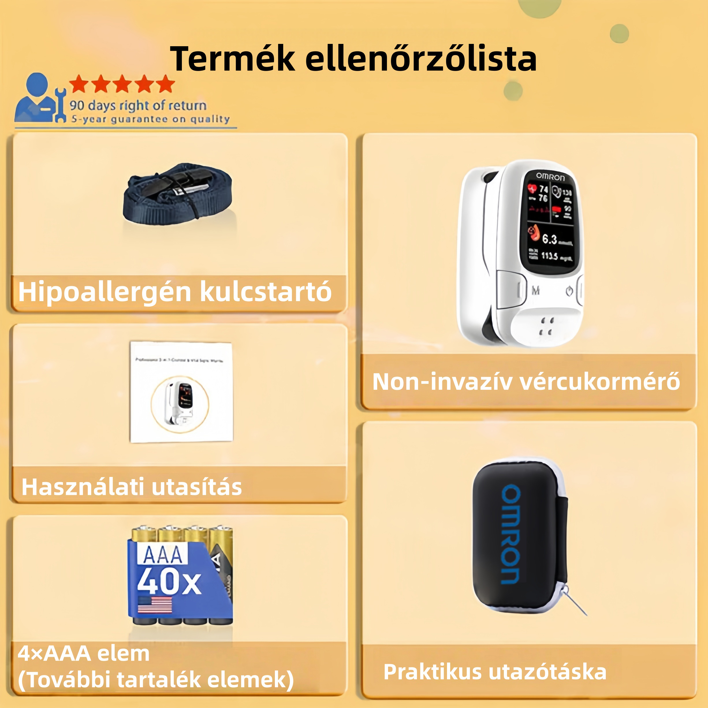Az Omron™ segítségével biztonságosan, kényelmesen és fájdalommentesen ellenőrizheti vércukorszintjét.